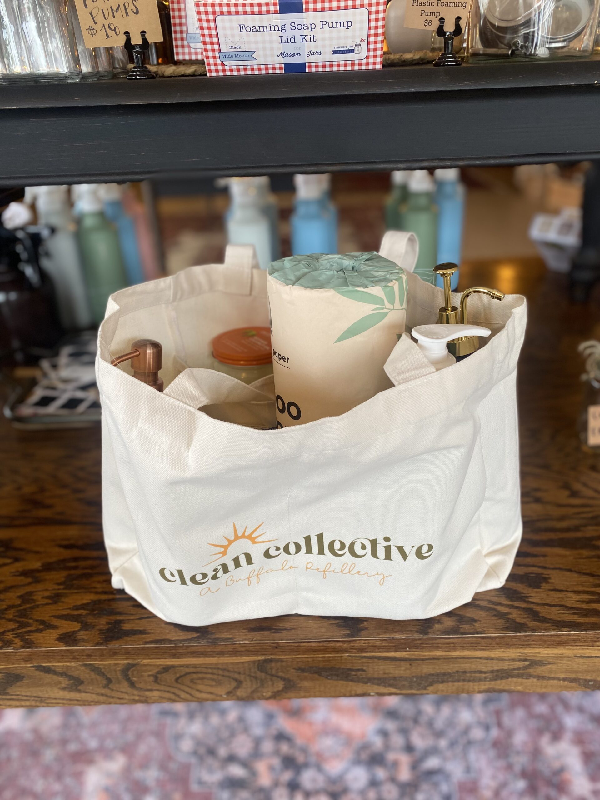 Such a great way to travel and get your refills. These pockets are big enough to fill all of your refills. Very sturdy Canvas Bag! My new favorite bag for refills.