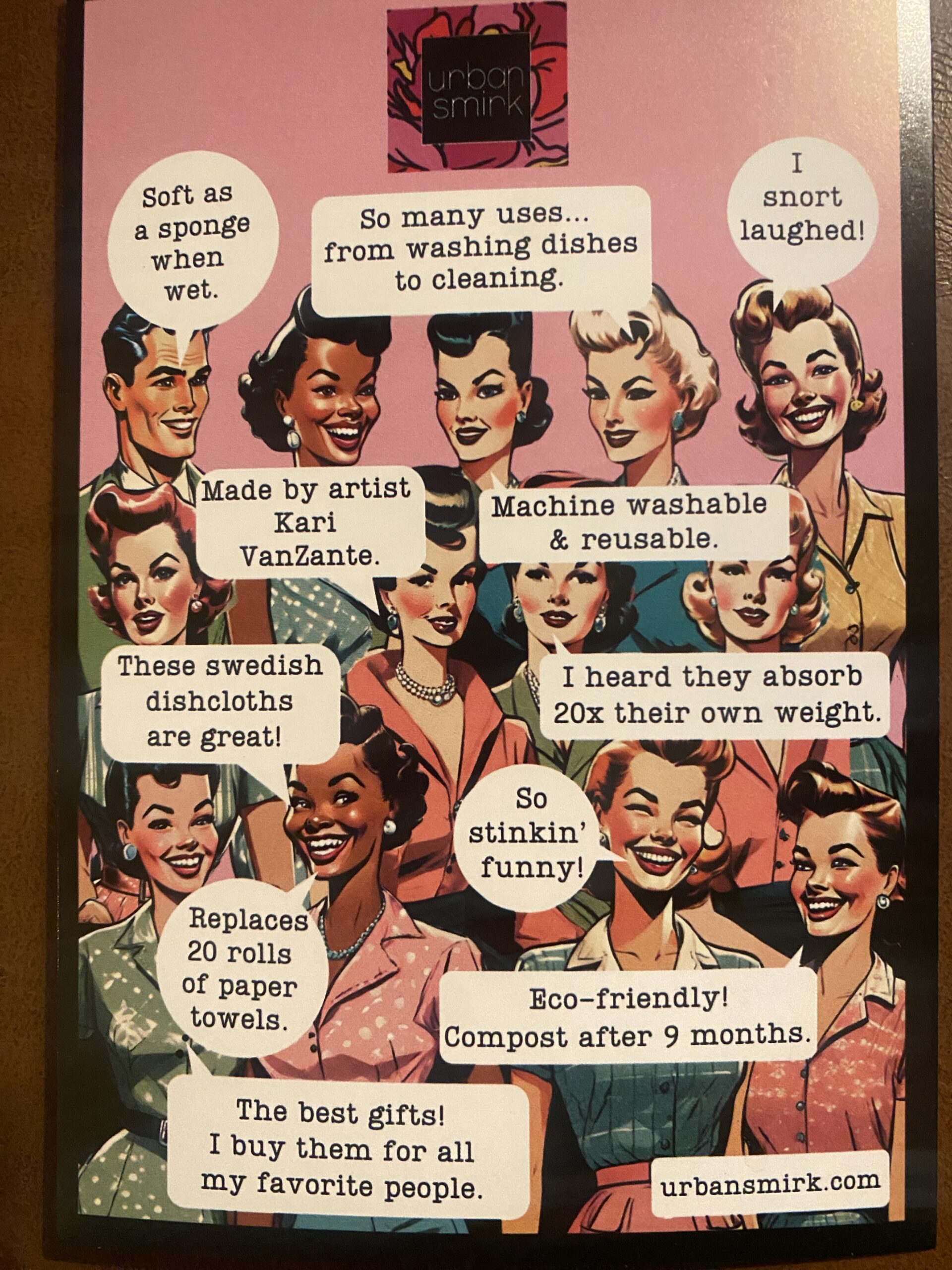 Urban Smirk Swedish Dishcloths bring all the personality! Each dishcloth is artist-designed, durable, and reusable — mixing hilarious sayings with vintage sass.